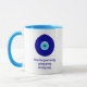 This artwork features a sleek, minimalist design with a diamond-shaped blue evil eye amulet and a customizable text field that reads, "Keep the good energy going strong all day long." Start your morning with a cozy cup of coffee and a touch of luck with this mug. Personalize it to match your style or purchase it as is.
