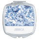 Personalized Blue Floral Bridesmaid Flower Travel Compact Mirror