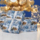 Personalized Blue Floral with Photos and Names Wrapping Paper