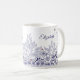 Beautiful blue flowers in a unique border pattern. From our 'Secret Garden' collection; Dianthus, lily of the Valley and foliage in indigo, Delft, blue. Blue Floral Botanical Border Mug. See our collections for more great designs.