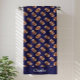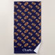 This football beach towel design is complete with a seamless pattern of footballs as well as a dark blue background color and a place to add your name.