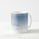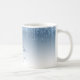 This chic, glamorous 80th birthday mug features a sparkly blue faux glitter drip border and blue ombre background. Personalize it with her name in blue handwriting script, with the birthday and date below in sans serif font.