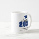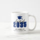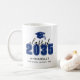 A sleek and modern graduation mug gift featuring a graduation cap icon at the top in blue, with “Class of” and the year displayed just below. The graduate’s name and school appear beneath in clean, elegant fonts, creating a polished and stylish design. The design wraps around the mug with two sides, ensuring it looks great from every angle.