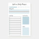 This modern daily planner in blue and gray features custom title in black calligraphy with blank templates for date, daily goals, to do list, notes, and motivational quotes. You can edit the text, font styles, and colors by clicking on Personalize and then Edit in Design tool. Use this planner to stay organized and focused, increase productivity, and complete your daily goals. Great for students, stay-at-home parents, and small business owners.