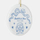 Personalized Blue Hand Drawn Whimsical Bow Wedding Ceramic Ornament