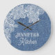 Tick-tock! Add a touch of Blue Jean Style to your Wall with this Customizable Denim Clock! Blue Denim Classic Jeans Texture Wall Clock featuring a Beautiful Lace Design. This Clock can't help but draw attention. Blue Jean Clocks make the Perfect Gift for any occasion or event! The Denim and Lace are Faux and Simulated. Personalize this Blue Jean Lace Clock to your Hearts content. Just Add Your Own Name!