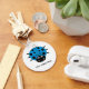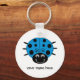 A cute blue cartoon ladybug on a round keychain. You can change the text by clicking the customize tab.