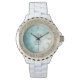 Personalized Blue Marble Women’s Rhinestone Watch – Elegant Couple’s Wedding or Anniversary Gift.