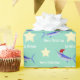 This fun wrapping paper features Blue Marlin fish sporting Santa hats and yellow stars on a vintage style green background. Personalize with your own text using the template. Click Customize It to make changes to the font and text placement.