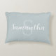 The cutest dorm room decor definitely includes a cute personalized pillow. This light blue pillow has a name in white and an initial a lighter blue.