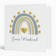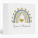 A simple cute personalized blue boho style rainbow encircled by metallic gold hearts personal or school binder. customize with your name in a whimsical script type.