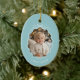 Celebrate the joy of the season with our elegant oval ceramic photo Christmas ornament. This timeless piece features a simple bow illustration at the top, adding a touch of classic charm. The ornament is designed with a whimsical and cute wavy frame where you can insert a cherished photo, making it a perfect keepsake for your tree. This ornament is not just a decoration; it’s a memory captured in a beautiful, customizable design. Perfect for gifting or adding a personal touch to your own holiday collection. Shown in a pastel blue and white color palette, but ALL COLORS ARE EDITABLE. You may choose different colors for the background, frame and bow, as well as text. © Kimbellished, LLC