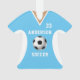 Celebrate your soccer star with this personalized blue soccer jersey ornament. Perfect for commemorating a special season, player, or team. Customize it with a name and number to create a unique keepsake.