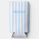 Keep drinks cold in style with this personalized blue stripe slim can cooler. Featuring soft light blue and white vertical stripes with a custom name across the front, this skinny can holder is perfect for beach trips, pool days, bachelorette parties, bridal showers, and girls’ weekends.