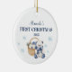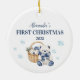 Personalized Blue Teddy Bear First Christmas Ceramic Ornament