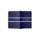 Modern travel passport holder features a navy blue and white design with light blue accents. Personalized name is presented in a coordinating navy blue banner with a double lighter blue stripe with white accents and typography.