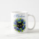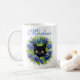 Personalized Bluebonnets flowers, black cat, Lone Star, Texan floral design. Beautiful Blue flowers illustration. Texas State. Bluebonnets mug.