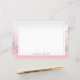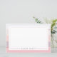 Background and back of stationery paper features Wide stripes in shades of blush and lavender with thin stripes of metallic rose gold dividing the colors. Thin border and custom name on the front.