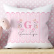 Celebrate the arrival of a new baby girl with this pretty floral monogram pillow. Adorned with delicate flowers, charming pink scallop borders, and subtle pin stripes, this sweet and girly pillow will complement any bedroom decor. The minimalistic, feminine design makes this pillow an ideal gift for a new baby or baby shower. Customize the pillow with the baby's name and initial for a unique touch. Create a cozy and stylish space for your little one with this delightful accessory.