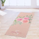 This pretty yoga mat is decorated with a watercolor bouquet of roses and foliage in shades of pink, coral, and green on a blush pink background.