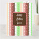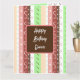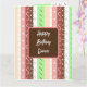 Personalized Cute whimsical Birthday card with pink, mauve, brown, burgundy and sage green polka dots and stripes pattern. Earthy warm colors. Swirls and polka dots.