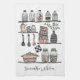 A modern bohemian inspired kitchen towel with a hand-drawn kitchen shelf illustration, perfect for boho chic farmhouse living. Designed in a pastel coral pink, gray, and green color palette, this unique home decor accessory will be a stunning accent piece for the kitchen and dining room and make a beautiful gift for her who loves cooking.