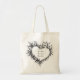 Boho chic personalized tote featuring a wild floral heart sketch. Artistic black and white botanical design. Customize this reusable bag with names. Perfect unique gift for bohemian weddings, bridal showers, bridesmaids, bachelorette favors, nature lovers, teachers, or stylish daily shopping.
