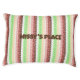 Personalized Cute whimsical boho dog dog bed with pink, mauve, brown, burgundy and sage green polka dots and stripes pattern. Earthy warm colors.