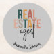 Personalized Boho Real Estate Agent Gift Round Paper Coaster