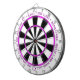 This bold and stunning dartboard template design features purple and fushia highlights with black and white dartboard segments on your chosen color background frame (default: white). On the dartboard frame, your custom text in your desired color circles around the dartboard. By default, the text is purple to match the coordinating colors of the dartboard. Ideas of text you can add to the frame are mentioned: your name, your favorite song lyrics, inspirational quotes and any other text message you want. This color scheme is pretty and modern, with a bright and bold feminine touch.