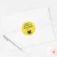 These customizable round vinyl stickers have an image of a cartoon honey bee on a honeycomb background.