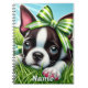 Personalized Boston Terrier Puppy with Green Bow Notebook