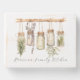Bring soft French country charm into your home with this personalized botanical kitchen herbs wood sign. A watercolor row of glass jars filled with herbs rests on a rustic wooden shelf, with greenery hanging below against a whitewashed, distressed wood background. The script text at the bottom is fully editable, so you can add your family name or kitchen name for a custom touch. Perfect for everyday kitchen decor, a cozy cottage or farmhouse pantry, or as a thoughtful gift for anyone who loves cooking, herbs, and simple living.