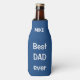 Personalized Bottle Cooler/Best Dad ever not keeping your beer can cold making you crazy? Instead, grab a Zazzle insulated bottle cooler. Not only is this beer sleeve fully customizable on the front, back, and bottom, but it is also made of a special high-density material for extra toastiness. With all the stress of the modern world, sometimes it’s not easy to chill out. But luckily we’ve got a remedy for you, a fully customizable bottle cooler. Keep your hands warm, your bottle cold, and your spirit 100% chill. Fits any standard 12 oz. bottle. Dimensions: 3" (diameter), 7" (height). Customize all sides, including the bottom. Edge-to-edge full color print to flatter the most beautiful of designs. Sturdy zipper makes it easy to take on and off. Made from high density open cell polyurethane foam. Collapsible foam material makes for easy storage. Great volume discounts for weddings, tailgate, and special events. Proudly made in the USA.