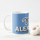 Personalized boys mug with customizable kids name. Cute gift idea for childrens Birthday. Personalizable mug with little star. Custom blue background color. Custom cups.