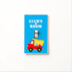 Personalized light switch cover with cute red toy dumptruck. Construction dump truck design for kids bedroom or baby nursery room. Blue or custom background color. Custom home decor and decorations for little children. Unique baby shower gift idea for newborn and new mom dad / parents. Custom wall plates.