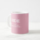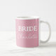 This personalized pink and white coffee mug makes a great gift for the Bride To Be. Featuring bold white text and elegant script. To add your own name click on the personalize button.