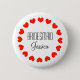 Personalized bridesmaid buttons with red hearts and elegant font. Great for bachelorette party, bridal shower and beautiful weddings. Classy round design. Posh and cute!