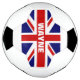 Personalized British Union Jack flag soccer ball. English pride design for fans of team GB Great Britain UK United Kingdom. Custom sports ball with custom name. Kids toys. Cute Birthday party gift idea for boys and girls who love playing soccer / football. Modern typography template design. Add your own name, quote or monogram. Make your own fun favor for a children's Birthday party. Add your own text for grandson, son, grandchild, granddaughter, daughter, nephew, cousin etc. Also nice as thank you gift to coach, soccer mom, soccer dad etc.