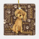 Brown Personalized throw pillow for your dog. Customizable with your dog's name. When you change the name Buddy to your own pet's name it will change all the typographical names at the same time. Word cloud art typography. Different font type and styles in brown and beige paw prints that looks great with a rustic barn style home. Trendy and modern design.