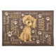 Brown Personalized throw pillow for your dog. Customizable with your dog's name. When you change the name Buddy to your own pet's name it will change all the typographical names at the same time. Word cloud art typography. Different font type and styles in brown and beige paw prints that looks great with a rustic barn style home. Trendy and modern design. Everything is customizable. You can change the brown background color, change the font style and size and color. The cute brown puppy dog is fluffy/wavy with a sort of beard and looks like a Goldendoodle, Groodle, Labradoodle, Retriever, Terrier, Poodle. Cockapoo, Cavapoo, Maltipoo, Havanese, Schnoodle, Shih Tzu, Lhasa Apso, Yorkshire Terrier, Sheepdog, Schnauzer, Bearded Collie, and many more.
