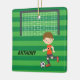 Personalized Brown Haired Soccer Boy Christmas Ceramic Ornament
