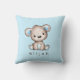 Personalized Brown Teddy Bear Baby Boy Blue Throw Pillow