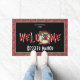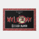 A bloody, brown werewolf with scary, sharp fangs, welcomes visitors and guests to your home and/or Halloween party. Personalize with your name and the year you moved into your home, or whatever details you'd like. According to folklore, a werewolf, or lycanthrope, is a human with the ability to shapeshift into a wolf during the night of a full moon. Most modern fiction says that silver bullets or weapons are the only way to kill werewolves. The border of this door mat is our silver bullet fabric pattern on a red background. For a bit of trivia - David Kessler is the name of the main character in American Werewolf in London.