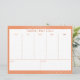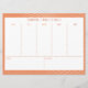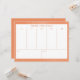 This modern budget friendly weekly schedule features an abstract minimalist orange background with white template 5 columns for days of the week MON to FRI, and 2 rectangles for additional text below (Notes and Priority). Personalize it with your own name and text to suit your needs.