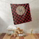 A baby blanket featuring an illustration of a baby deer and a red and black buffalo plaid background. Personalize the name.