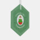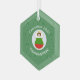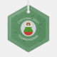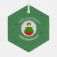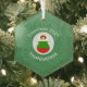 Christmas angel wears the flag of Bulgaria on this hexagon shaped glass ornament for Christmas decor. The Bulgarian angel flies in the center of a white circle of squiggly squares surrounded by a background of green squiggly squares. Add a name to personalize. Add the year to customize. You can add your own text instead, if you wish.