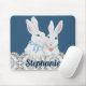 Unique, cute and elegant! A mouse pad design for any bunny rabbit lover, and it's personalized! Add a name to this cute pattern which includes a pair of romantic white bunnies looking over a lacy edging. The background is blue. Your name will be in a darker blue in a pretty italic font. - easy to customize using the text template and edit menu. Original artwork & design by Tuzi Williams.