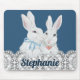 Personalized Bunny Rabbit Blue and White Lace Cute Mouse Pad