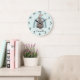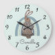 Personalized Bunny Rainbow Blue Nursery Large Cloc Clock